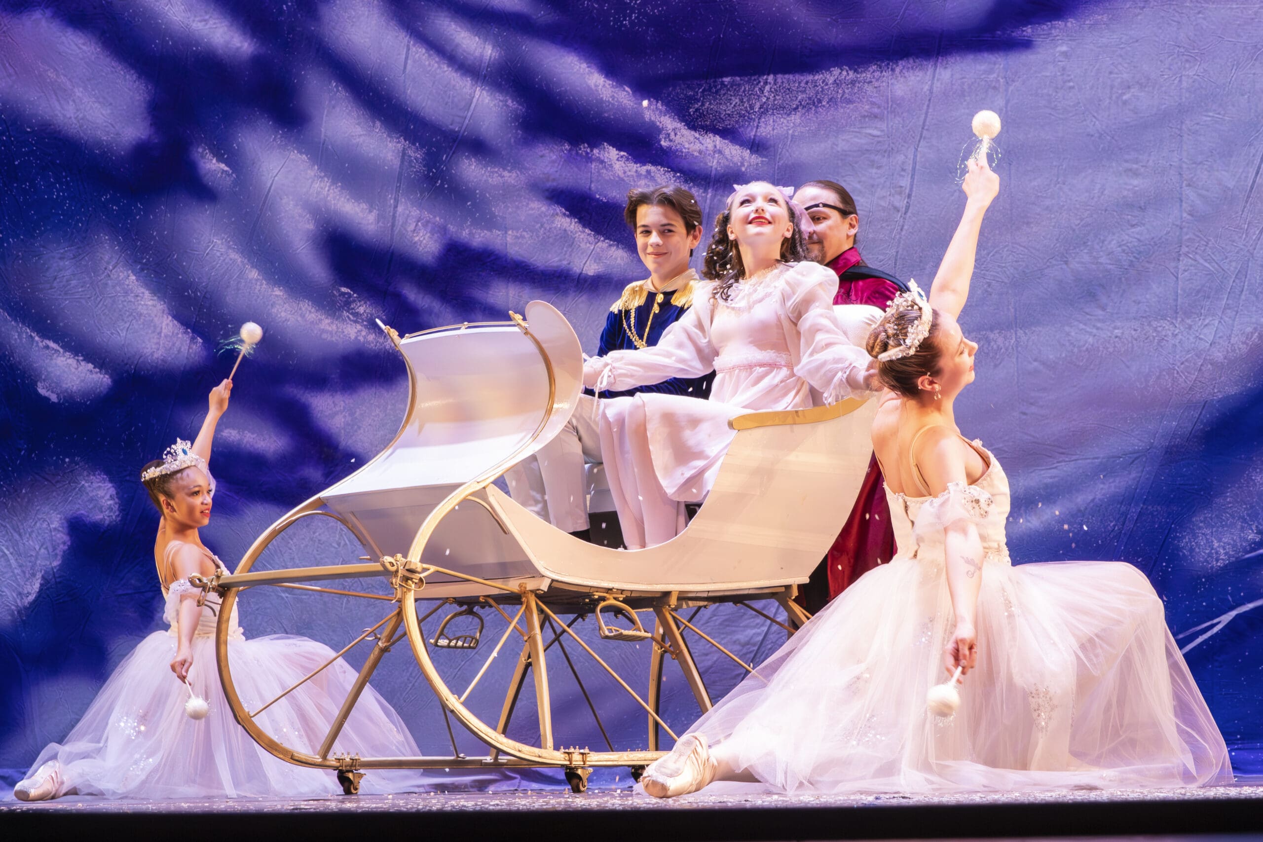The Nutcracker Ballet takes place in two acts and tells the story of a Christmas Eve in the 1800s at the home of young Clara and her family, The Stahlbaum’s, during their holiday party. The mysterious magician, Drosselmyer, makes a surprise visit and presents Clara with a very unique Nutcracker doll. This begins the magical journey of Clara and her Nutcracker Prince from an intense battle between toy soldiers and mice to the Kingdom of Snow and the Land of Sweets.